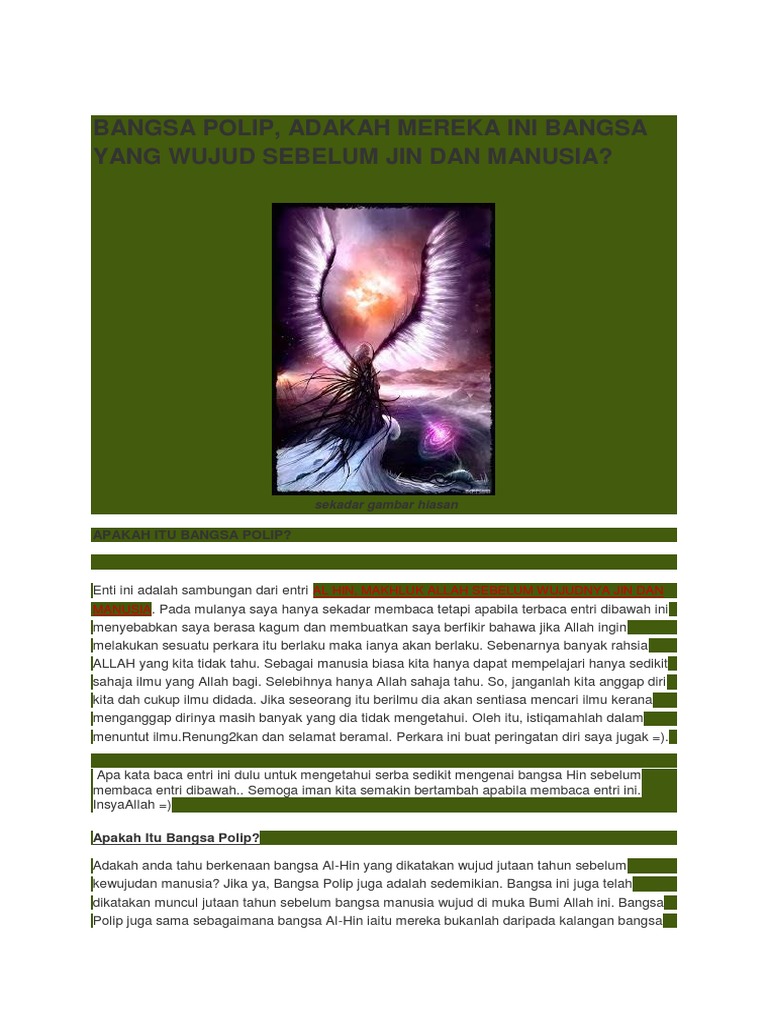 Bangsa Polip Adakah Mereka Ini Bangsa Yang Wujud Sebelum Jin Dan Manusia Pdf