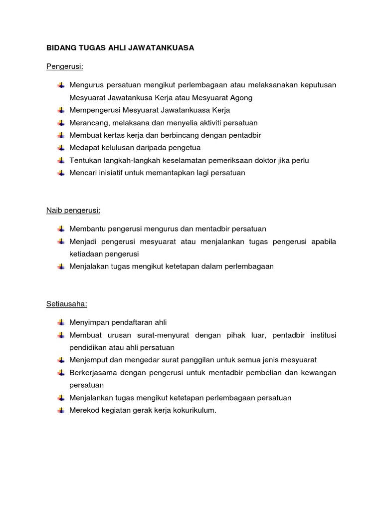 Senarai Tugas Ahli Jawatankuasa