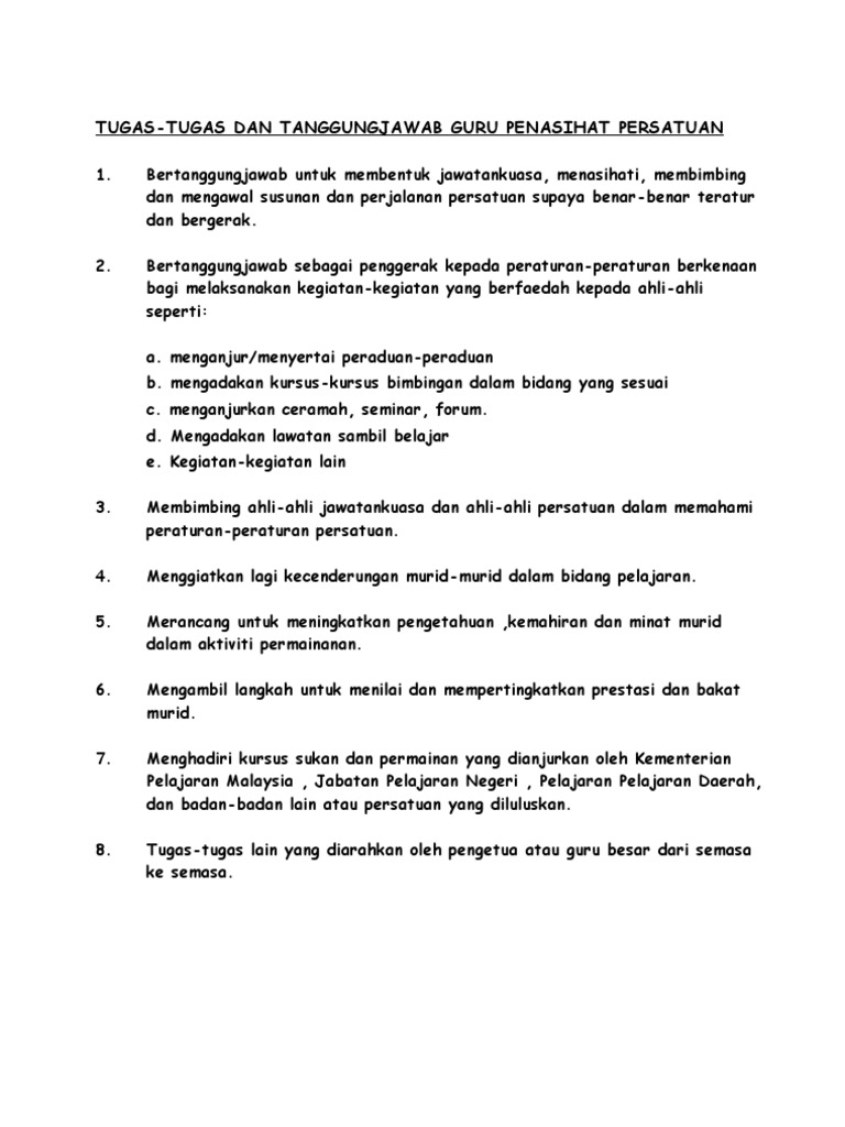 Senarai Tugas Guru Penasihat Dan Ajk Persatuan