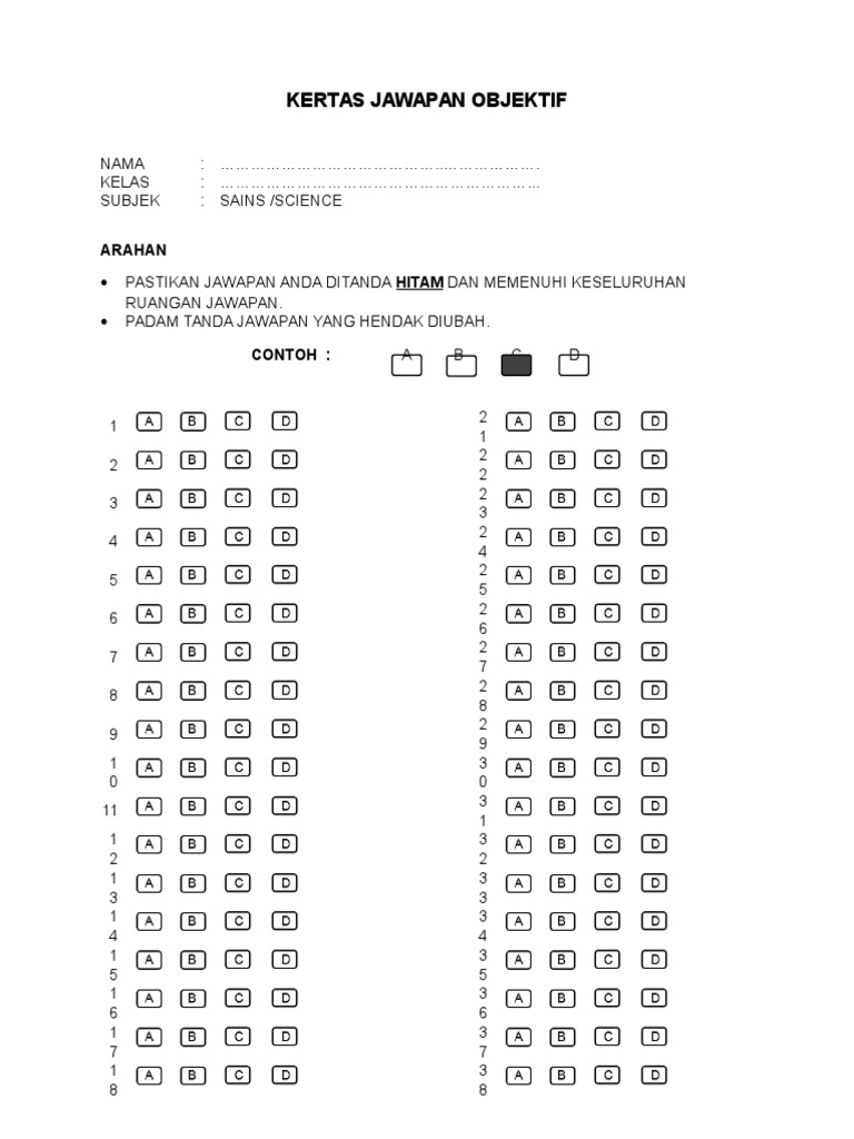 Contoh Kertas Jawapan Objektif Cute766