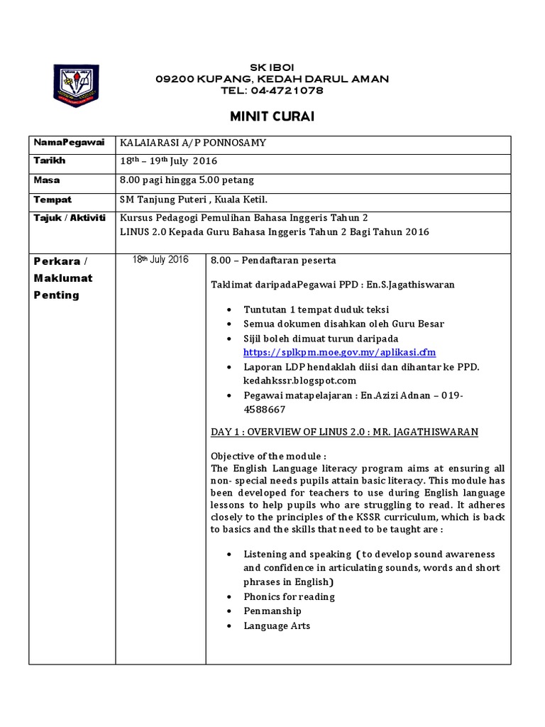 Contoh Minit Curai Spsk Pages 1 1 Text Version Anyflip