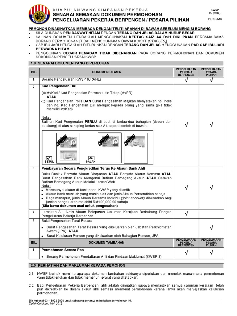 Dokumen Yang Diperlukan Untuk Pengeluaran Kwsp Taraf Berpencen
