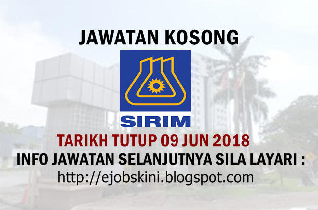 Jawatan Kosong Terkini Di Sirim Berhad 09 Jun 2018