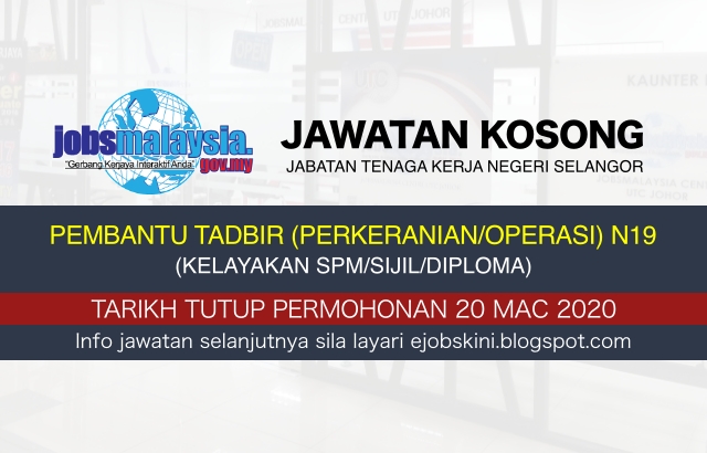 Jawatan Kosong Jabatan Tenaga Kerja Selangor Tarikh Tutup 31 Julai 2020