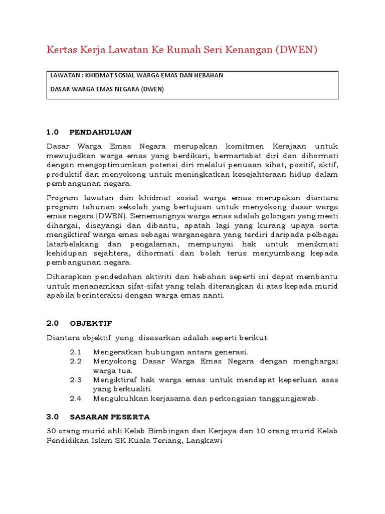Kertas Kerja Lawatan Ke Rumah Orang Tua Pdf