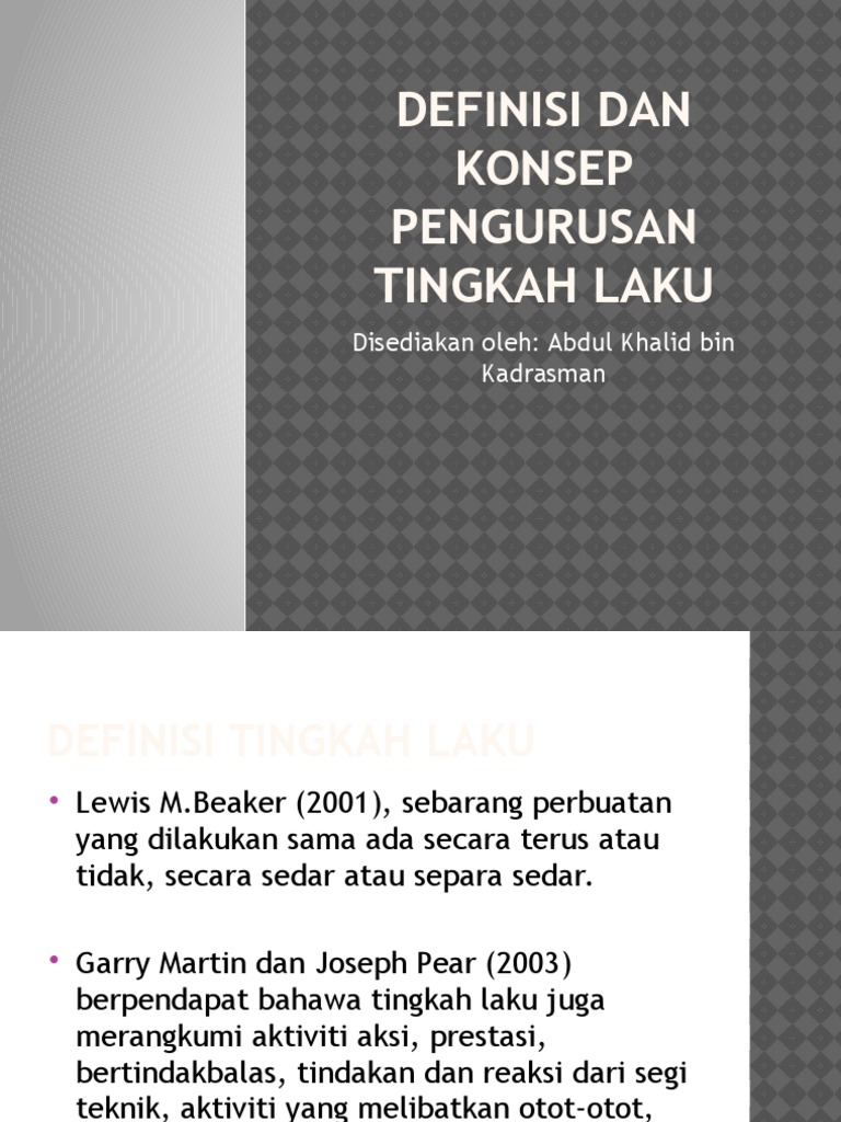 Kbk 3043 pengurusan tingkah laku dalam pendidikan khas kumpulan satu definisi dan konsep pengurusan tingkah lakushahru azniza d20101037231azyan syuzana d20101037214aisyah aqilah d20101037289muhammad fitri d20101037233nadia amani d20101037284. Tajuk 1 pengenalan dan konsep 1 1 definisi dan konsep bermula dari tahun 1920 an kajian kajian berkaitan tingkah laku menunjukkan fak. Konsep pengurusan tingkah laku tingkah laku dipelajari sepanjang masa. Rahman f0111 373munirah binti abd.