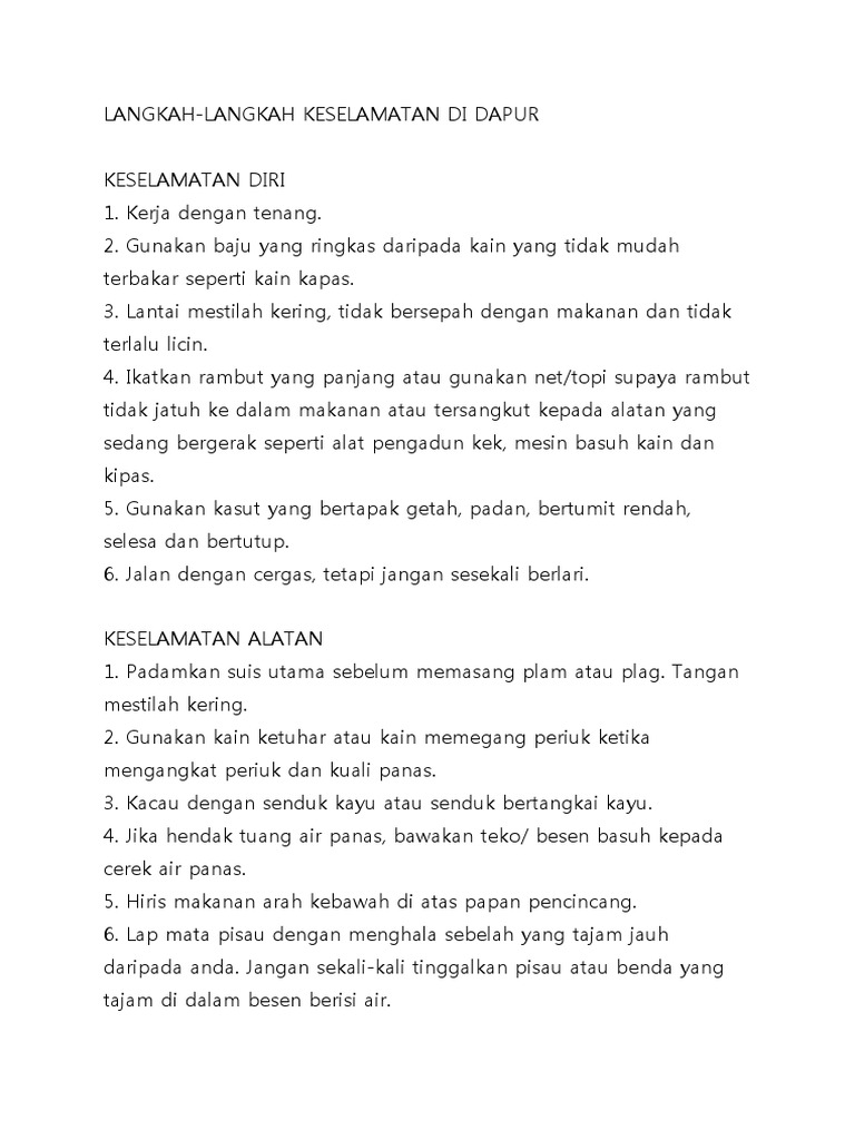 Keselamatan Di Bengkel Kebun Dan Dapur