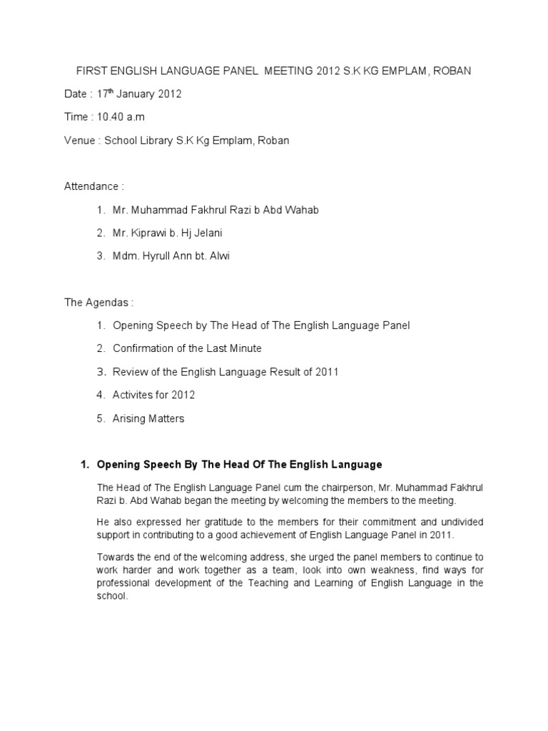 Doc Minit Mesyuarat Panitia Bahasa Inggeris Alis Hafizi Academia Edu