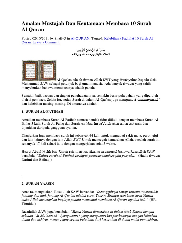 Bunga Rampai Anak Lingga Surat Al Muawwidzatain Dua Surat Pelindung Diri