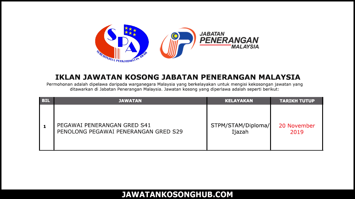 Pegawai penerangan gred s41 di jabatan penerangan malaysia. Tarikh sukatan peperiksaan diluluskan. A mempunyai kelayakan di perenggan 1 c. Jawatan pegawai penerangan gred s41 ini merupakan antara jawatan kerajaan yang dapat dipohon sekiranya anda berkelulusan dalam ijazah sarjana phd. Pegawai penerangan dari gred s41 adalah ditawarkan kepada individu yang mempunyai kelayakan sekurang kurangnya ijazah sarjana muda dalam bidang yang berkaitan.