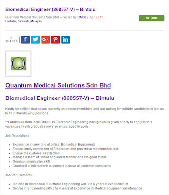 Oil Gas Vacancies Biomedical Engineer Quantum Medical Solutions Bintulu