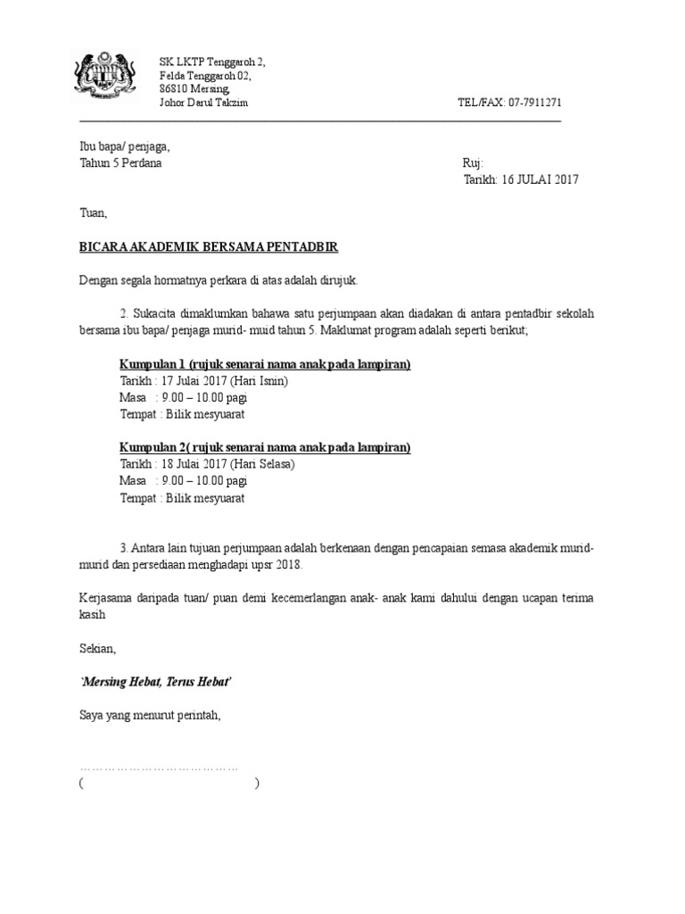 Surat Perjumpaan Ibu Bapa Tahun 5