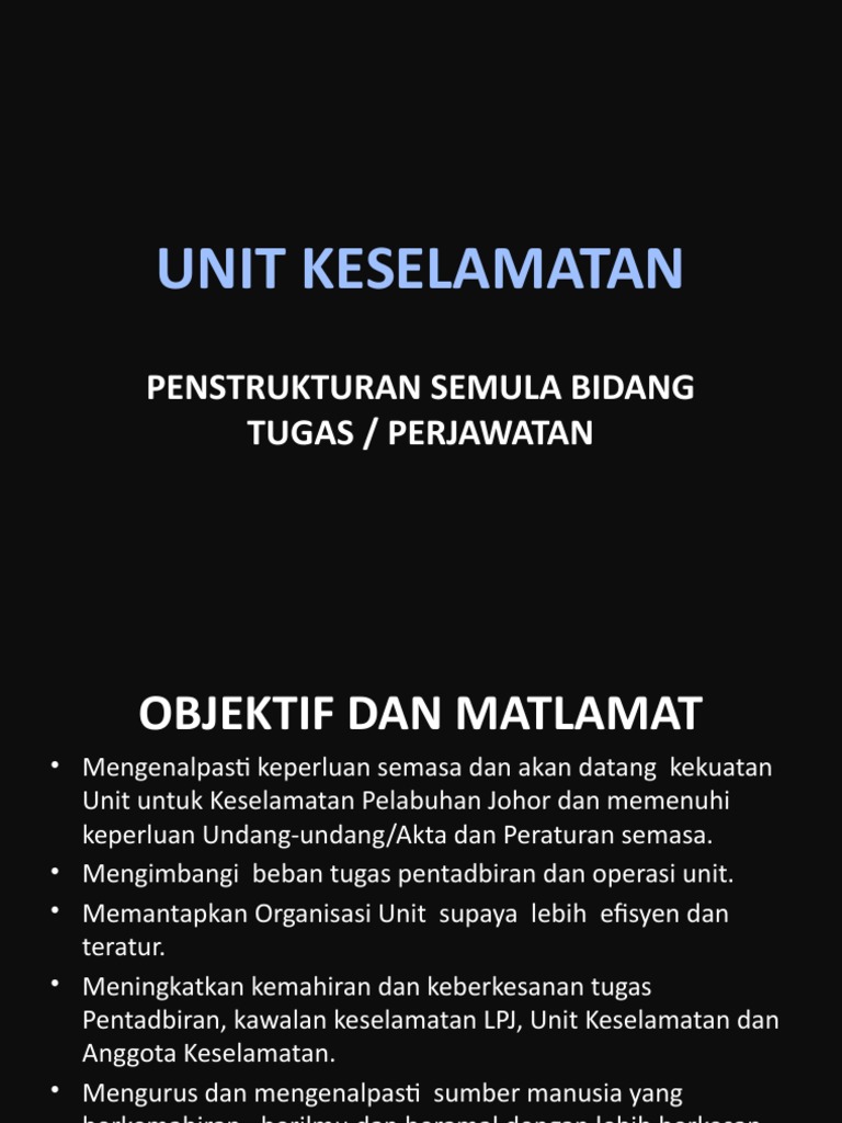 Cadangan Carta Tugas Unit Keselamatan